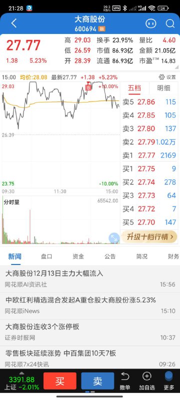 昨天涨停板的时候卖了,有点可惜