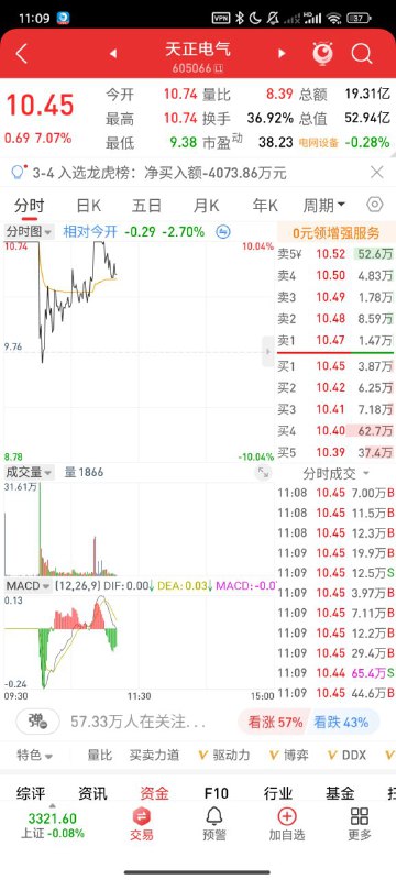 605066我没有看错,今天是跌停开盘的,今天大盘行情好,虽然往上在攻,但今天很明显是主力在慢慢出货了,连板的可能性基本上没有了