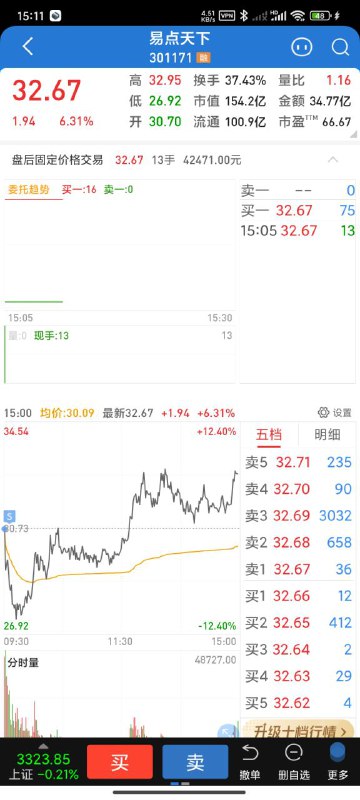 这个票今天果然涨停了,可惜我没有沉住气,卖早了,第一个高点就卖了。