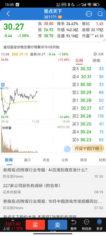 蓝营装备又试一个错,没有量比的冲高必定要回调。昨天调低了量比非要买这个,今天果然错了。要调整一天,明天才能往上冲。但我今天出掉了,没有留。记着上次的教训。
